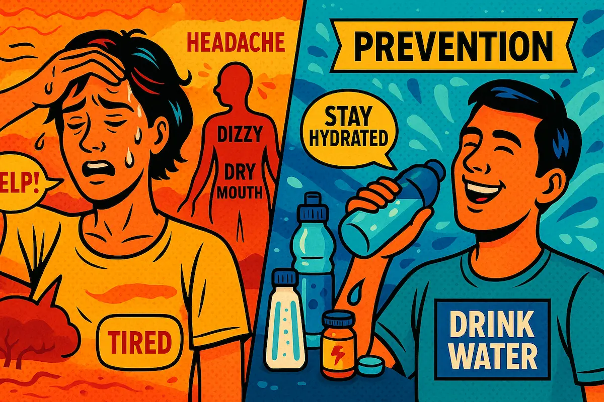 まず、高温多湿の環境下や運動中は最も脱水が進みやすい状況です。大量の汗をかくことで水分と電解質が同時に失われ、放置すれば熱中症を引き起こすおそれがあります。屋外活動やスポーツの際は、こまめな水分補給に加え、適度な塩分摂取も意識する必要があります。