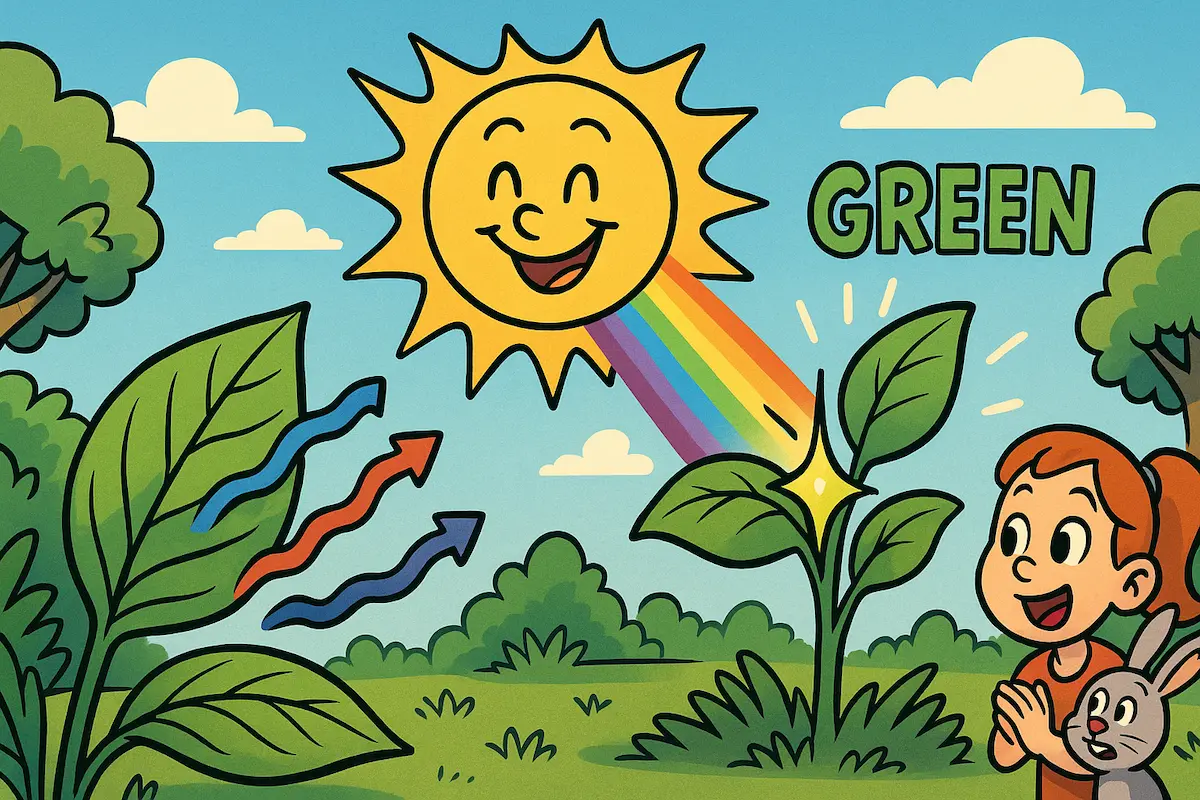植物が緑色をしているのは、葉緑体に含まれるクロロフィルが赤と青の光を効率的に吸収し、緑の光を反射するためです。この特性は光合成の効率を最大化するために進化の過程で選ばれた戦略であり、太陽光の性質や生命誕生当初の環境とも深く関係しています。