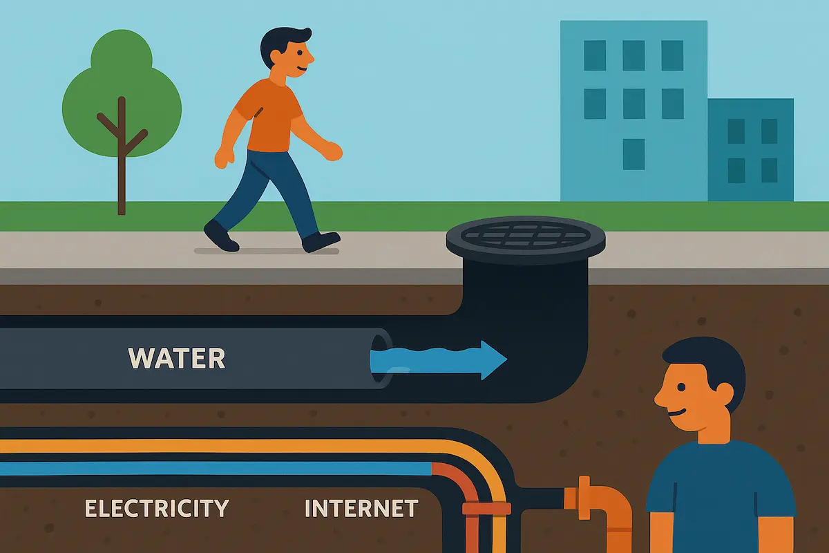 このように、マンホールは下水・電気・通信・ガス・水道といった多様なライフラインにつながっており、都市機能の維持に欠かせない存在です。